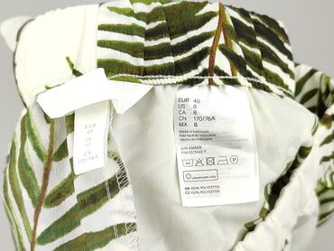 Damskie spodnie z szeroką nogawką, wzór tropikalnych liści - Krój: proste, szerokie nogawki typu palazzo; wysoki stan z elastyczną gumką w pasie. - Tkanina: 100% poliester (wg metki), lekka i zwie...