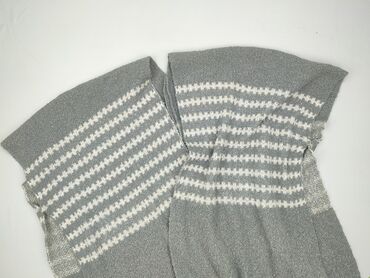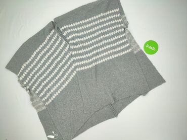 Białe ponczo damskie z kolekcji Pimkie, ozdobione poziomymi paskami w odcieniach szarości i bieli. Wykonane z lekkiego materiału, idealne na cieplejsze dni. Posiada frędzle na brzegach, dodające mu...