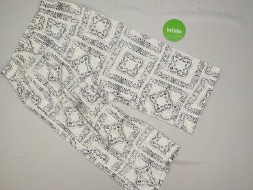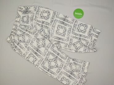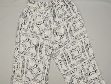 Damskie spodnie z miękkiego, lejącego materiału - Kolor: czarny w biały, roślinny print (gałązki i kwiaty) - Krój: luźne nogawki, długość 7/8 – 3/4 (w zależności od wzrostu), lekko zwężane przy kos...Stan: