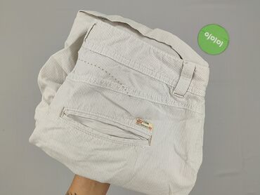 Damskie szorty w paski - Krój: krótkie, z mankietem na dole nogawek - Wzór: pionowe, wąskie białe paski na szarobeżowym tle - Zapięcie: guzik i zamek z przodu - Kieszenie: dwie przednie ukośne, ty...
