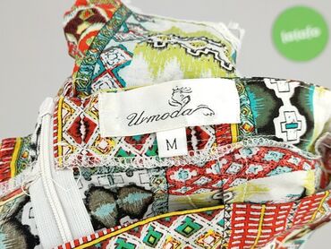 Szorty damskie z lekkiego materiału, wzór boho/paisley. - Rozmiar: M (na metce) - Skład: 100% poliester - Talia: szeroki, marszczony pas na gumce z wiązaniem z przodu - Krój: luźny, bardzo zwiewny...Kolorowe damskie szorty boho Umoda, rozmiar M