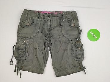 Damskie szorty casual, kolor ciemnozielony/khaki. - Rozmiar: 8 (z metki) - Talia: szeroki, elastyczny ściągacz z troczkiem do regulacji - Kieszenie: 2 przednie skośne + 2 tylne naszywane - Nogawki...