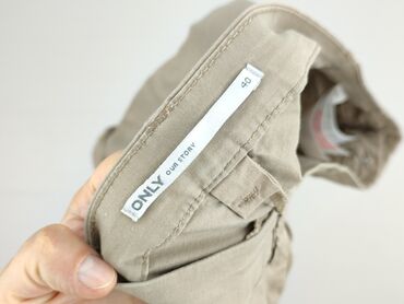 Beżowe damskie szorty chino marki ONLY, rozmiar 40. Posiadają dwie kieszenie z przodu i dwie z tyłu. Zapięcie na guzik i zamek błyskawiczny. Nogawki zakończone podwiniętymi mankietami. Idealne do codziennych stylizacji.