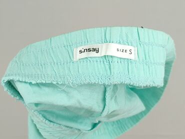 Sinsay – krótkie spodenki damskie - Rozmiar: XS (z metki) - Kolor: jasny, pastelowy zielony/szałwiowy - Fason: krótkie szorty z lekko zaokrąglonymi bokami - Pas: szeroka, marszczona guma + sznurek...