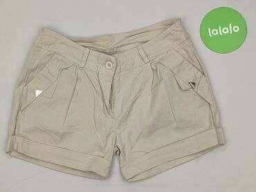 Damskie szorty beżowe - Kolor: jasny beż/taupe - Rozmiar z metki: M - Skład: 95% bawełna, 5% elastan – miękki, lekko elastyczny materiał - Krój: krótkie, z podwiniętymi nogawkami - Zapięcie: guzik...