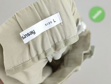 Szorty damskie Sinsay - Kolor: beżowy - Rozmiar z metki: L - Fason: wysoki stan z marszczoną gumką w pasie - Pasek z tego samego materiału do wiązania - Dwie kieszenie po bokach - Skład materiału:...