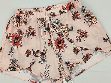 Krótkie szorty damskie w kwiaty - Rozmiar: L (na metce) - Materiał: 100% bawełna – miękka, przewiewna tkanina idealna na lato - Kolor i wzór: różowe tło z kwiatowym printem w odcieniach brzoskwini...
