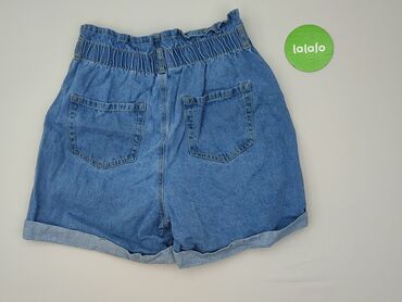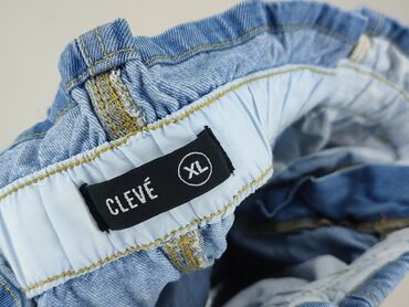 Szorty damskie jeansowe CLEVÉ - Rozmiar: XL (z metki) - Fason: paperbag/high waist – wysoki stan z marszczoną gumą w pasie - Zapięcie: podwójny guzik + zamek - Kieszenie: 2 skośne z przodu, 2 nasz...