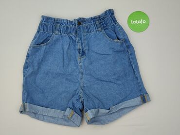 Szorty damskie CLEVÉ – denim - Rozmiar: S - Skład: 100% bawełna (denim) - Kolor: klasyczny jasnoniebieski - Krój: wysoki stan z marszczoną gumką w pasie - Zapięcie: dwa guziki + suwak - Szlufki na...