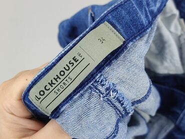 Szorty jeansowe CLEVE – rozmiar S - Kolor: jasny niebieski (denim) - Fason: paperbag z wysokim stanem, marszczona talia z tunelowym ściągaczem i szlufkami - Zapięcie: guzik + zamek - Kieszenie: 2 ...