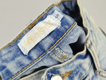 Jeansowe szorty damskie /DENIM, rozmiar 8. - Klasyczny jasnoniebieski denim z efektem sprania - Krój z wysokim stanem - 5 kieszeni: dwie z przodu + mała kieszonka, dwie z tyłu - Szlufki na pasek, ...