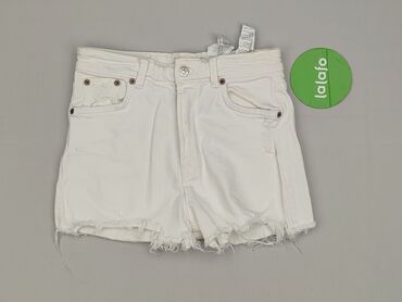 Szorty jeansowe ZARA dla kobiet - Model: denimowe szorty z przetarciami i postrzępionymi krawędziami - Kolor: jasny, sprany błękit - Stan zapięcia: suwak + guzik, szlufki na pasek - Krój: wysoki s...