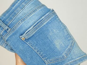Szorty jeansowe Sinsay – Denim Collection - Rozmiar: XS (z metki) - Kolor: klasyczny niebieski denim z przetarciami i delikatnymi dziurami - Krój: krótkie, z wywijaną nogawką i postrzępionym dołem...