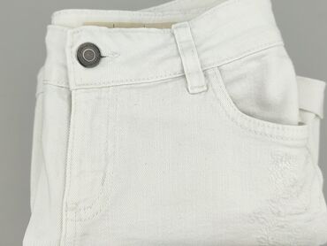 Białe damskie szorty jeansowe Esmara - Krój: medium waist (średni stan), krótkie nogawki z podwiniętym mankietem - Fason 5‑kieszeniowy: 2 kieszenie z przodu + kieszonka bilonowa, 2 naszywane kiesz...