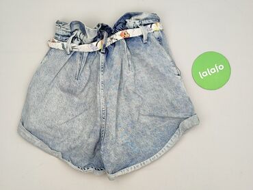 Szorty jeansowe damskie - Rozmiar: XS (z metki) - Krój: paperbag z wysokim stanem - Talia: mocno marszczona, elastyczna guma + szlufki na pasek - Zapięcie: z przodu na suwak i dwa guziki - Kieszen...