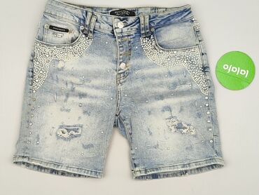 Jeansowe szorty VIVA COUTURE - Rozmiar z metki: EU 32 (US/CA 2, CN 155/60) - Kolor: jasny denim, delikatnie sprany - Fason: krótki, z postrzępionym dołem, stan średni - Zapięcie: guzik + zamek, sz...