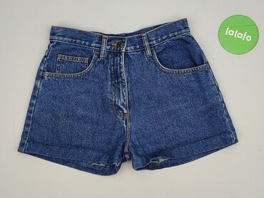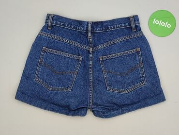 Damskie szorty jeansowe - Materiał: denim w klasycznym, średnio-niebieskim odcieniu z delikatnymi przetarciami z przodu - Krój: krótkie szorty z postrzępioną krawędzią nogawek (raw hem) - Zapięcie...