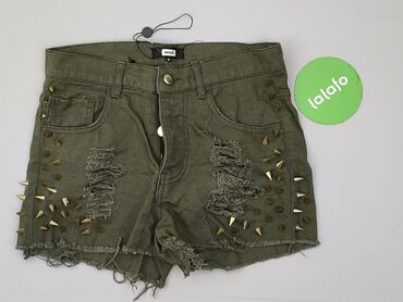 Krótkie spodenki jeansowe BIK BOK - Rozmiar: XS (metka) - Materiał: 100% bawełna (denim) - Kolor: khaki/oliwkowy - Fason: wysoki stan, krótkie nogawki - Zapięcie: guzik i suwak, szlufki na pasek -...