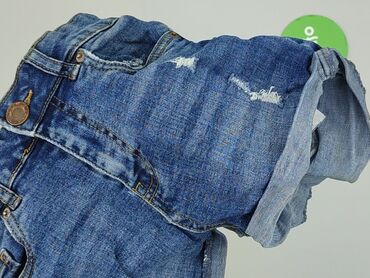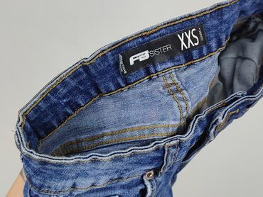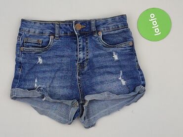 Szorty jeansowe damskie FB Sister - Model: denimowe szorty z przetarciami i postrzępioną krawędzią nogawek - Rozmiar z metki: S - Krój: niska/średnia talia, krótszy fason - Zapięcie: guzik metalow...