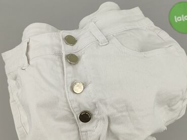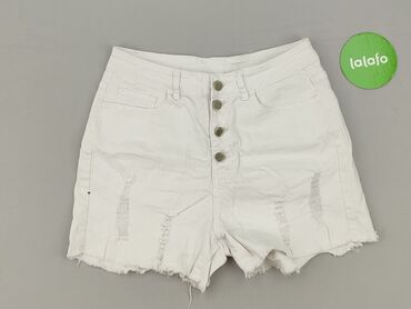 Białe damskie szorty jeansowe SHEIN - Model: krótkie denimowe szorty z postrzępionym dołem i delikatnymi przetarciami - Kolor: biały - Materiał: 100% bawełna (metka w środku) - Zapięcie: suwak + m...