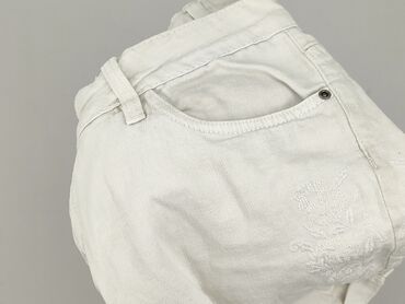 Białe damskie szorty jeansowe Esmara - Krój: medium waist (średni stan), krótkie nogawki z podwiniętym mankietem - Fason 5‑kieszeniowy: 2 kieszenie z przodu + kieszonka bilonowa, 2 naszywane kiesz...