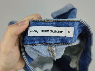 Sinsay – damskie szorty jeansowe - Linia: denim collection - Rozmiar z metki: L - Klasyczny, niebieski denim - Krój z wysokim stanem - Podwijane nogawki - Zapięcie na guzik i zamek - 5 kieszeni: d...