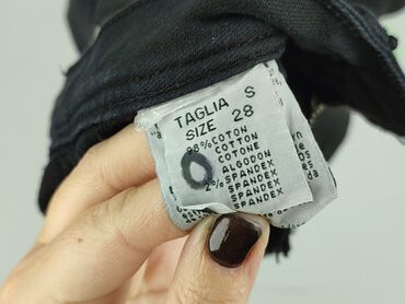 Czarne damskie szorty denim Sinsay - Rozmiar z metki: 36 - Fason: wysoki stan, krótkie nogawki - Zapięcie: guzik i suwak z przodu - Kolor: czarny - Skład materiału: 73% bawełna, 26% poliester, 1% ...
