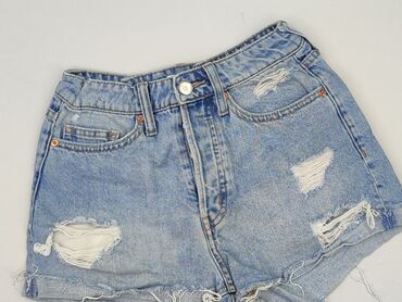 Szorty jeansowe damskie H&M - Model: denimowe szorty z przetarciami i postrzępioną krawędzią nogawek - Kolor: jasny/średni niebieski (stonewash) - Krój: klasyczny 5‑kieszeniowy, szlufki na pasek, ...