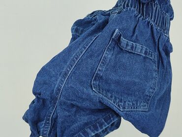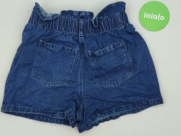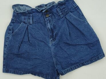 Szorty jeansowe CLEVE – rozmiar S - Klasyczny, ciemny denim - Talia paperbag z elastyczną gumką - Pasek z tego samego materiału do wiązania + szlufki - Zapięcie na guzik i zamek - 2 przednie kiesz...
