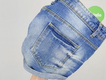 Sinsay – jeansowe szorty damskie - Rozmiar: 36 (z metki) - Materiał: denim/bawełna (klasyczny, grubszy jeans) - Kolor: jasny niebieski, sprany efekt - Krój: wysoki stan, krótka nogawka - Wykończen...