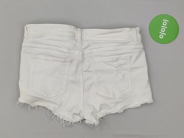 Białe szorty jeansowe damskie Denim – model z wysokim stanem. - Kolor: biały - Krój: wysoki stan, krótkie nogawki z podwinięciem - Zapięcie: cztery metalowe guziki z przodu - Kieszenie: 5 kieszeni...