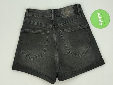 - Krój: krótkie nogawki z podwiniętym mankietem, pięć kieszeni, szlufki na pasek