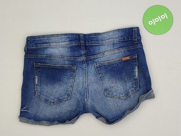 Szorty jeansowe CLEVE – rozmiar S - Kolor: jasny niebieski (denim) - Fason: paperbag z wysokim stanem, marszczona talia z tunelowym ściągaczem i szlufkami - Zapięcie: guzik + zamek - Kieszenie: 2 ...