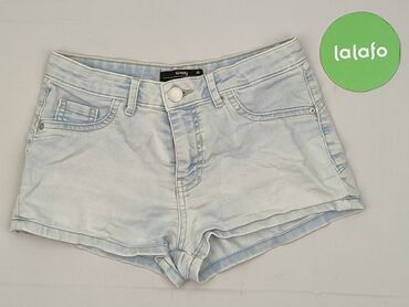 Szorty jeansowe damskie Sinsay - Model: denimowe szorty z wysokim stanem - Rozmiar z metki: 34 - Fason: luźniejsza nogawka, paperbag waist - Pas: elastyczna gumka + szlufki na pasek, zapięcie na g...