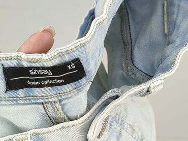 Szorty jeansowe damskie marki Sinsay z kolekcji "denim collection" w rozmiarze XS. Charakteryzują się niebieskim, spranym kolorem i postarzanym stylem z przetarciami i frędzlami, co nadaje im modny...