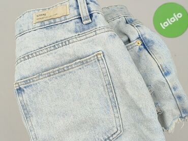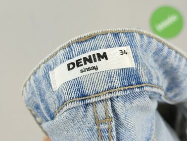 Szorty jeansowe Sinsay - Model: krótkie spodenki z denimu - Rozmiar z metki: 34 - Krój: luźny, z lekko zaokrąglonymi bokami - Talia: wysoka, elastyczna gumka z widocznym, dekoracyjnym przeszyciem ...