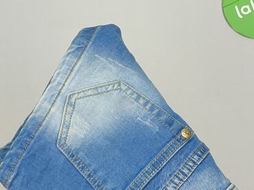 Damskie jeansowe szorty Sinsay - Rozmiar: XS - Fason: krótkie denimowe szorty z postrzępionym dołem - Stan: używane - Kolor: klasyczny niebieski jeans, delikatne przetarcia typu washed - Zapięcie:...