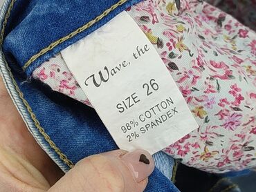 Szorty jeansowe damskie - Klasyczny niebieski denim z przetarciami i cieniowaniem - Skład materiału: 95% bawełna, 5% elastan – elastyczne i wygodne - Rozmiar z metki: 26 - Fason: krótkie szorty z ...