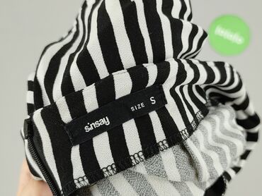 Szorty damskie Sinsay, rozmiar S. Krój: klasyczne szorty dżinsowe z zapięciem na guzik i zamek, szlufki na pasek. Wzór: drobne pionowe paski w odcieniach czerni i bieli. Kieszenie: 5-pocket (dwie z...