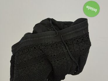 Czarne damskie spodenki plażowe z koronkową, ażurową warstwą zewnętrzną. - Rozmiar: XL (na metce) - Krój: krótkie, luźne; elastyczny pas z regulacją na sznurek - Materiał (wg metki): 82% poliester...