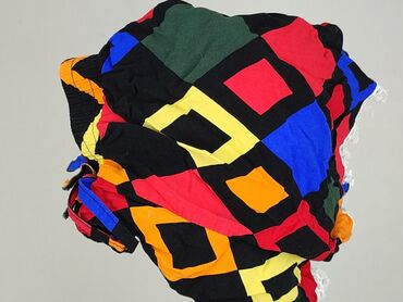 Kolorowe szorty damskie z lekkiej, zwiewnej tkaniny. - Wzór: zygzak w odcieniach zieleni, żółci, niebieskiego, brązu, bieli i czerni - Dół wykończony ozdobnymi, wielobarwnymi pomponikami - Stan:...