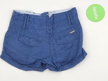 Szorty damskie RESERVED - Kolor: granatowy - Rozmiar: EU 38 / UK 10 (na metce) - Materiał: przewiewna tkanina o strukturze drobnego skośnego splotu (lniano‑bawełniany look) - Krój: krótkie szorty ...