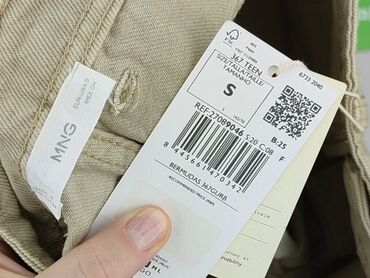 Szorty damskie w kolorze beżowym, wykonane z wytrzymałego materiału. Posiadają wysoki stan oraz pięć funkcjonalnych kieszeni: dwie z przodu, dwie z tyłu i jedną małą "zegarkową" kieszonkę. Idealne ...Stan: