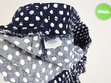- Detale: drobne falbanki/marszczenia przy nogawkach i na bokach, klasyczny wzór w kropki