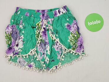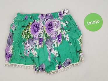 Zielono-białe szorty damskie It Hippie - Marka: It Hippie - Rozmiar z metki: L - Fason: krótkie szorty z wysokim stanem; pas mocno marszczony/ściągany gumką dla wygody - Wzór: duży, tropikalny roś...