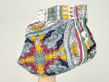Szorty damskie LEWOVONG, rozmiar 32. - Wzór: boho/etno, pasy z motywami kwiatowymi i geometrycznymi - Kolory: odcienie granatu i błękitu z akcentami różu oraz jasnej mięty - Krój: krótkie, lekko r...