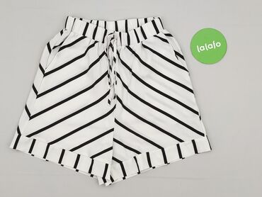 Damskie szorty w paski - Kolor: biały w czarne, pionowe paski - Krój: luźny, lekko rozkloszowany; krótkie nogawki z delikatnie zaokrąglonymi brzegami - Pas: szeroka, elastyczna talia ze sznurkiem ...