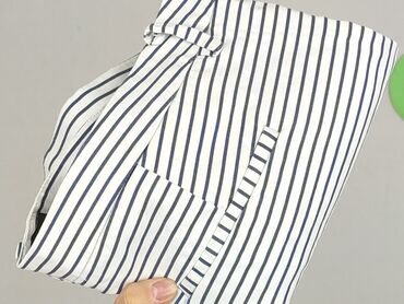 Szorty damskie MOHITO Collection - Model: krótkie szorty z zakładanym przodem (efekt „wrap”), z ukośnym wykończeniem nogawek - Wzór: białe w pionowe granatowe paski – optycznie wysmuklają sylwetkę...