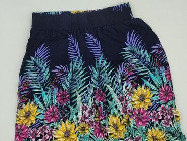 Szorty dziewczęce w tropikalny wzór - Kolor: niebieski z nadrukiem liści i kwiatów w odcieniach zieleni, różu i czerwieni - Krój: krótkie szorty z lekko zaokrąglonymi bokami i lamówką - Pas: szero...