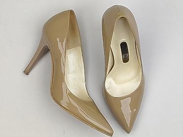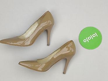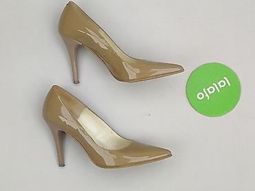 Czółenka damskie na obcasie - Rozmiar: 38 (oznaczenie na podeszwie) - Kolor: brąz/karmel - Wykończenie: lakierowane, z delikatnym połyskiem - Fason: klasyczne czółenka z zaokrąglonym noskiem - Obc...